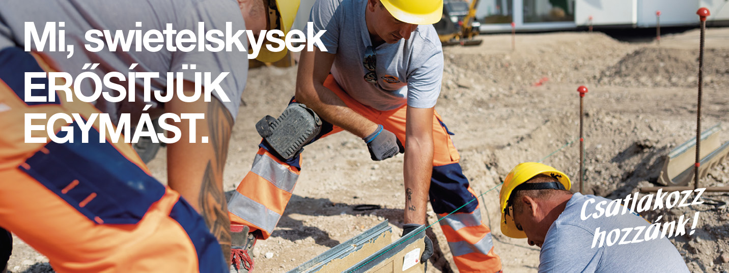 A SWIETELSKY Közép- és Kelet-Európa vezető építőipari vállalata. A mintegy 12000 munkatárs évente több mint hárommillió eurót generál az építőipar területén. Az építőipari szolgáltatások teljes skáláját lefedjük, valamint a legkiválóbb minőségről, a rugalmasságról és a határidők betartásáról vagyunk ismertek. A mögöttünk álló több évtizedes tapasztalattal, az építőipar élvonalában kivívott stabil pozíció megőrzése mellett továbbra is magabiztosan nézünk szembe az új kihívásokkal, tesszük a dolgunkat: „jövőt építünk”. Az osztrák Hellmuth Swietelsky által 1936-ban alapított, kezdetben útépítéssel foglalkozó családi vállalkozás mára az építőipar minden szegmensében tevékenykedő nemzetközi vállalatcsoporttá fejlődött.